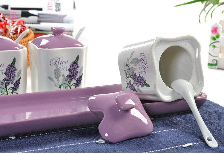 Bộ sản phẩm gồm: 03 hũ có nắp đậy + 03 thìa bằng sứ tráng men gắn ở ngoài + 01 khay gỗ.