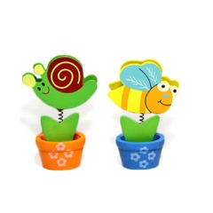 Sản phẩm được làm bằng gỗ, trang trí họa tiết đẹp mắt. Phần kẹp giấy khắc nhiều hình dạng độc đáo như: hình bông hóa, hình thú...